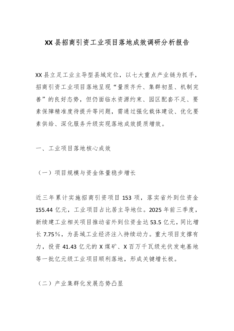 首页精选范文XX县招商引资工业项目落地成效调研分析报告_副本