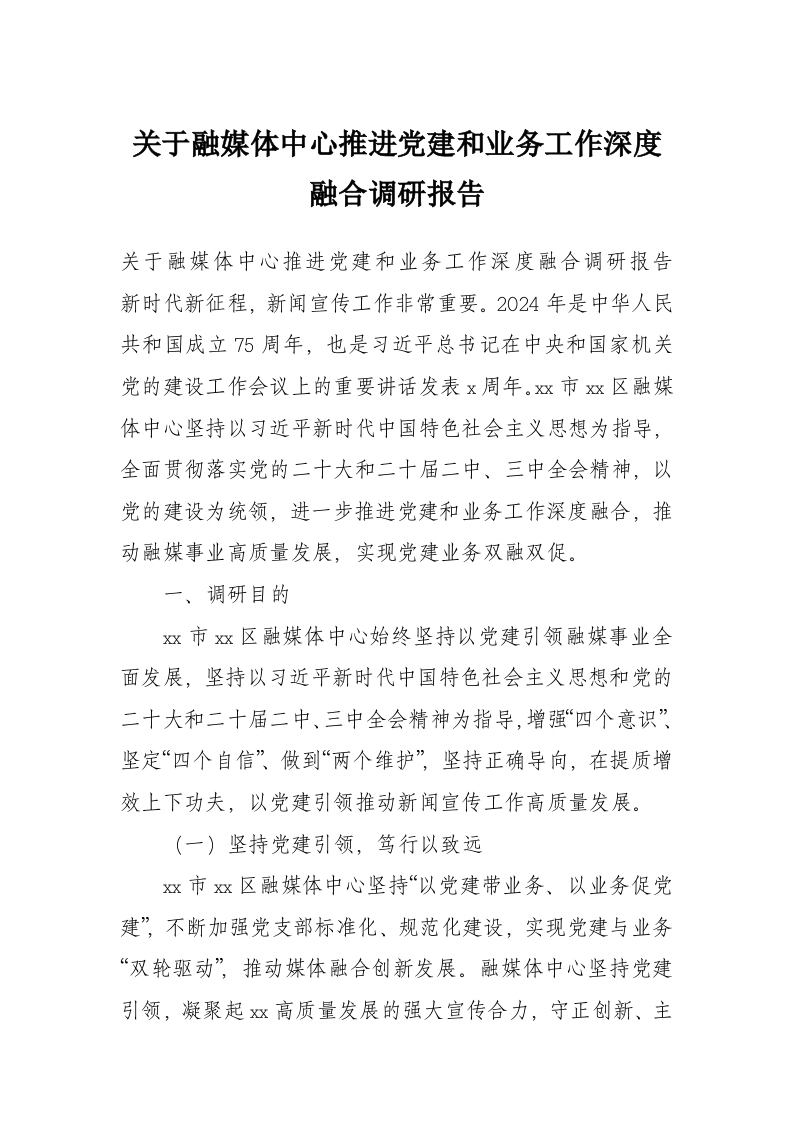 关于融媒体中心推进党建和业务工作深度融合调研报告