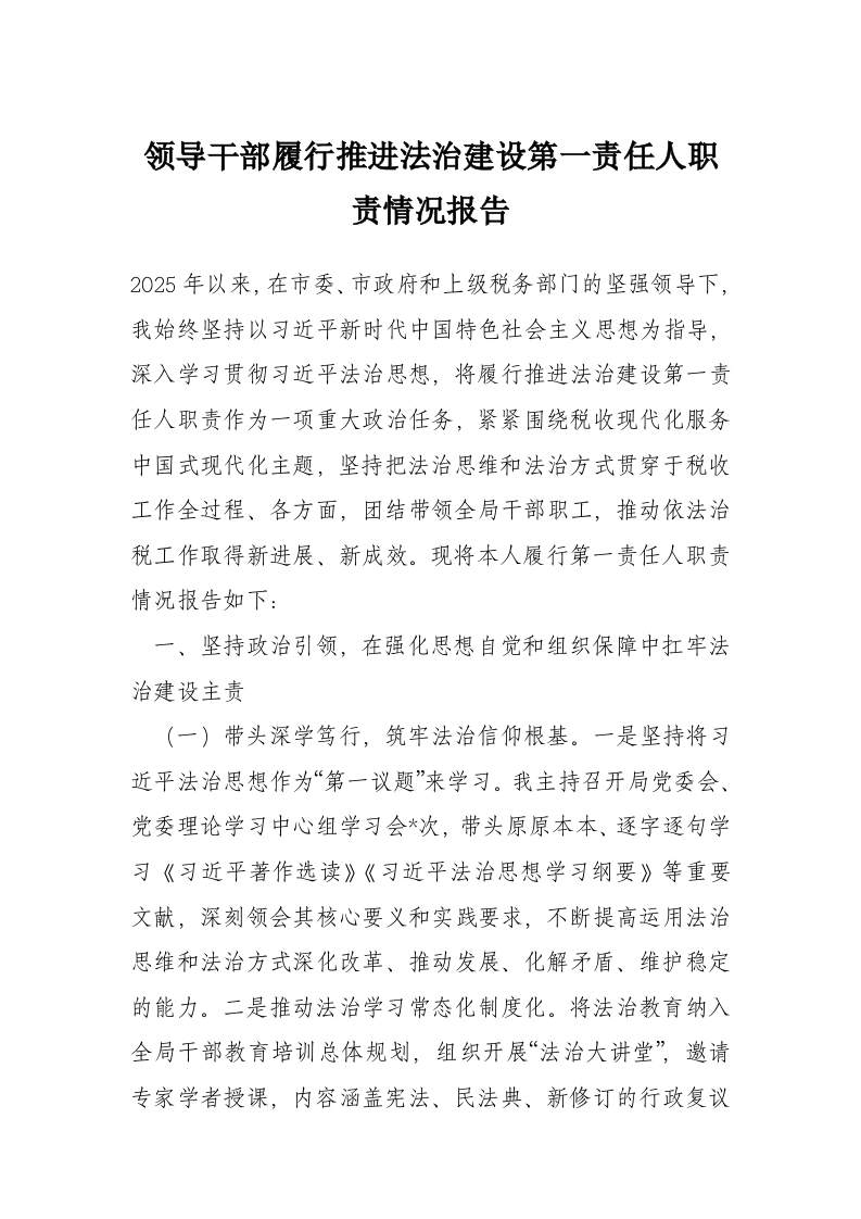 首页讲课讲稿领导干部履行推进法治建设第一责任人职责情况报告
