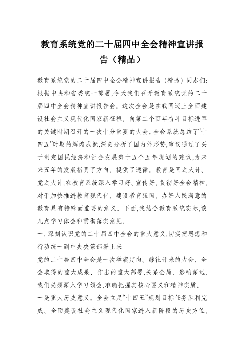 首页讲课讲稿教育系统党的二十届四中***精神宣讲报告(精品)