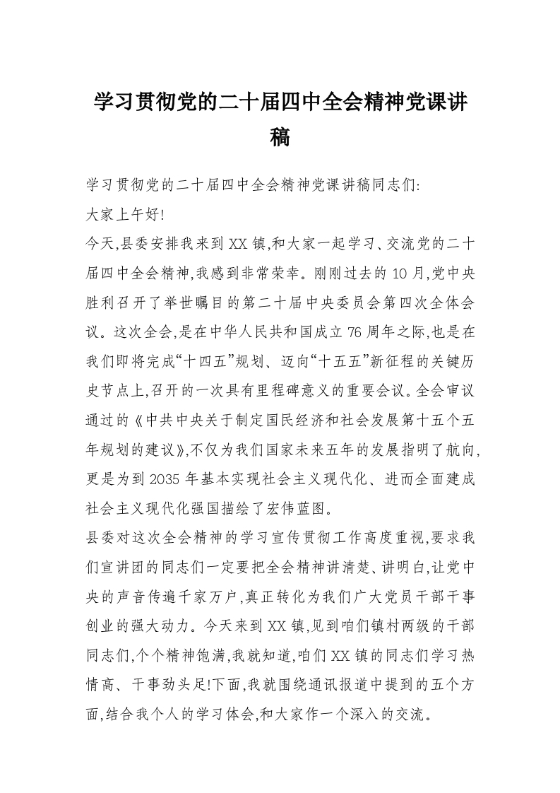 首页写作素材学习贯彻党的二十届四中***精神党课讲稿