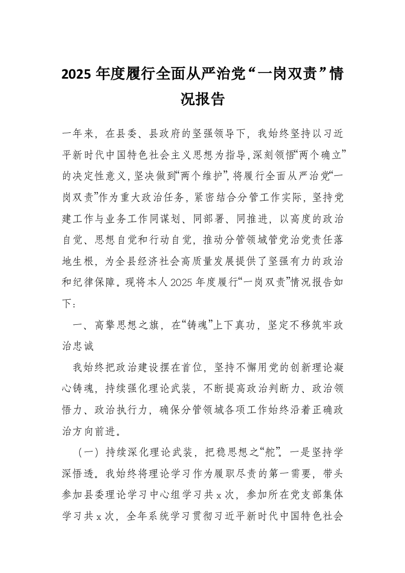 首页学习提升2025年度履行全面从严治党“一岗双责”情况报告