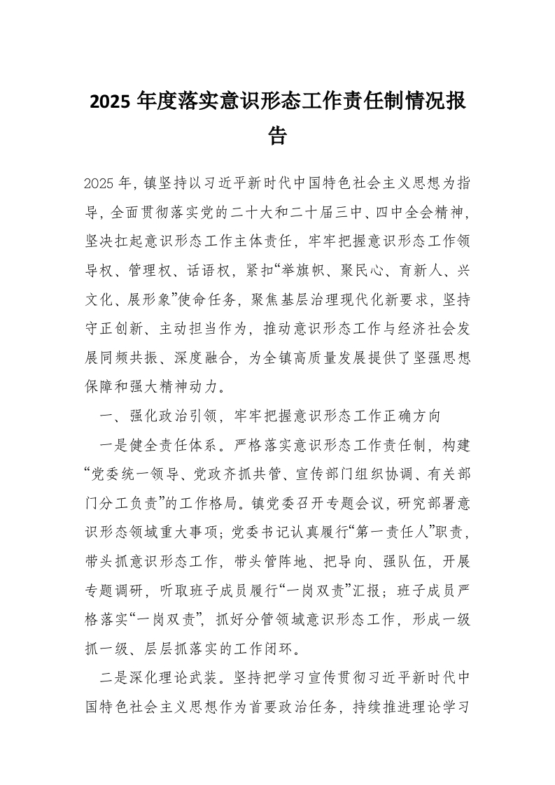 首页学习提升2025年度落实意识形态工作责任制情况报告