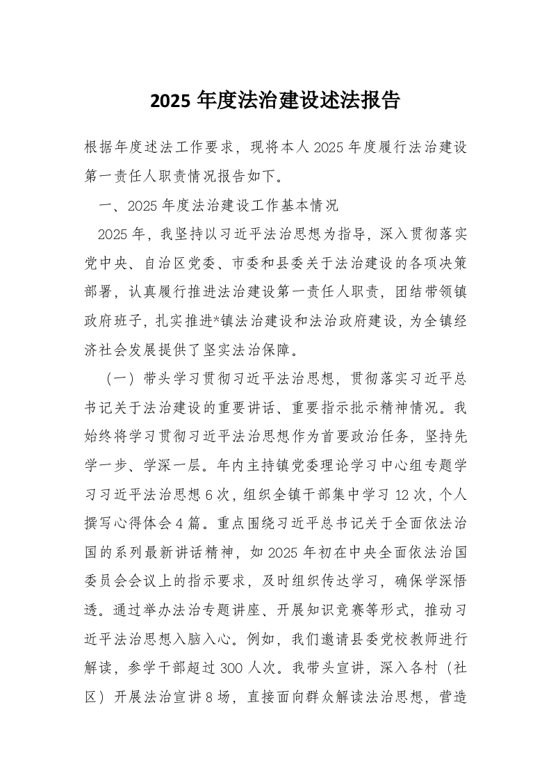 2025年度法治建设述法报告