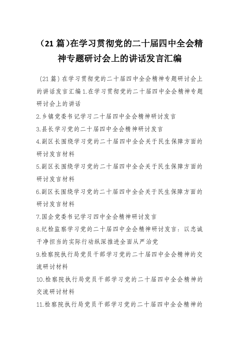 (21篇)在学习贯彻党的二十届四中***精神专题研讨会上的讲话发言汇编