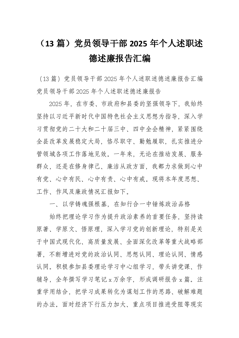 (13篇)党员领导干部2025年个人述职述德述廉报告汇编