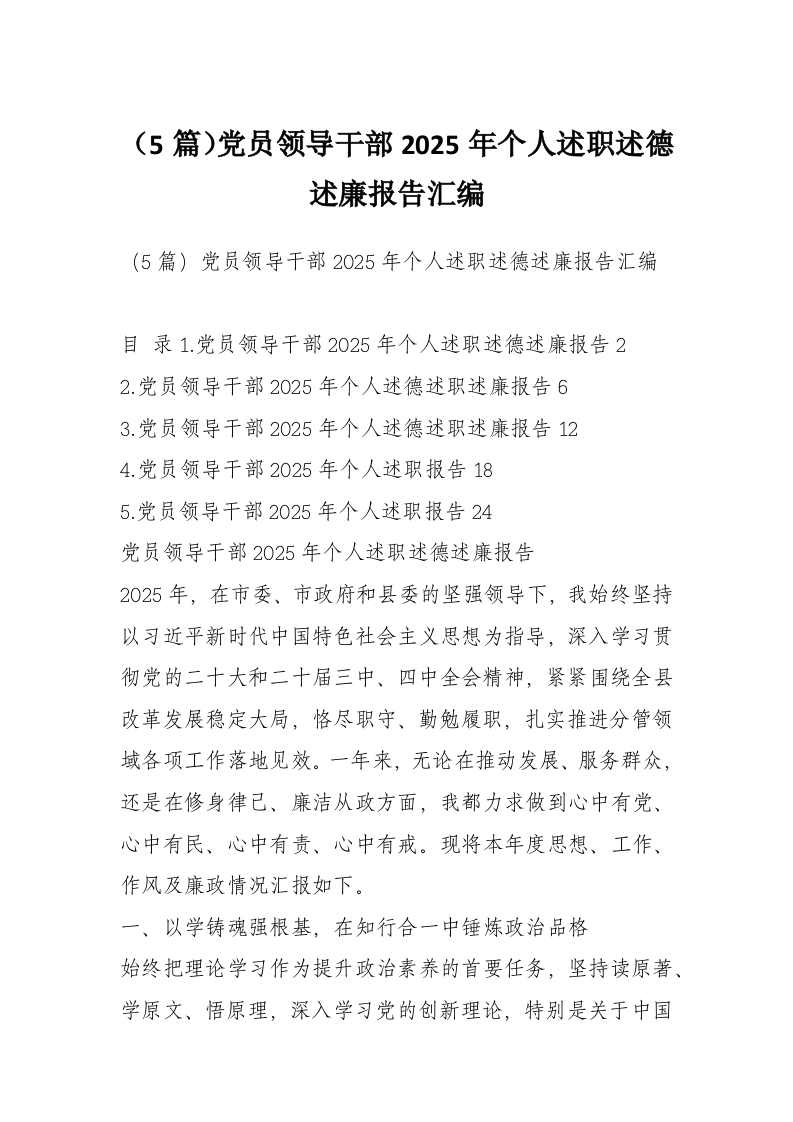 (5篇)党员领导干部2025年个人述职述德述廉报告汇编